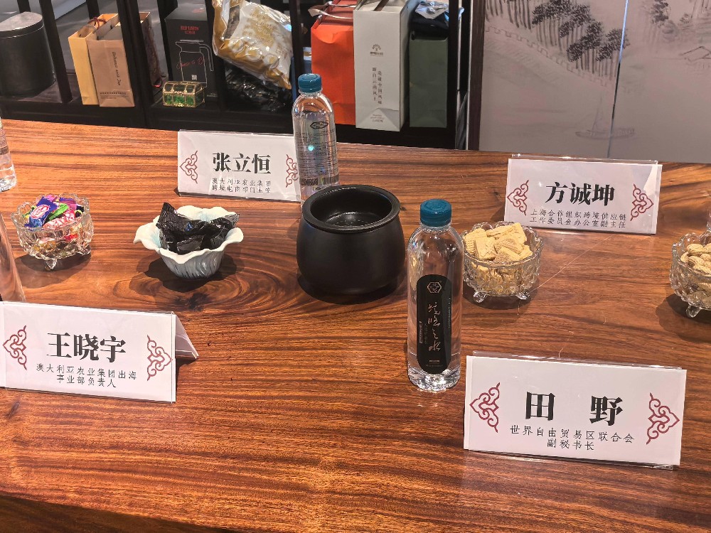 9 月 21 日,即便正值周日,境悠之水总部仍洋溢着热烈的交流氛围 —— 世界自由贸易区联合会副秘书长田野、杭州代理处主任徐园飞,上海合作组织跨境供应链工作委员会秘书长方思永、办公室副主任方诚坤,以及澳大利亚农业集团(下称 “澳农集团”)出海事业部负责人王晓宇、跨境电商部门主管张立恒等一行重磅嘉宾齐聚,围绕国际合作、品牌出海与市场布局展开深度对话,围绕跨境合作与市场布局展开深度对话,交流热度丝毫未受周末影响。